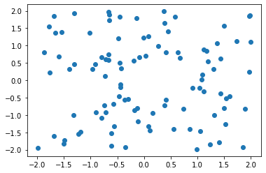 x1 = (np.random.random(100) - 0.5) * 4