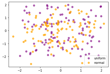 또한, plt.scatter 내부의 label 인자에 원하는 범례 이름을 적고, plt.legend를 호출하시면