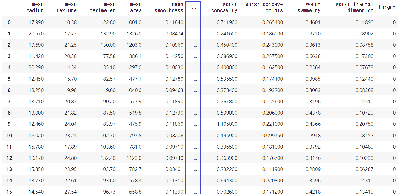 마찬가지로, display 옵션을 수정하여 데이터프레임의 열 출력 최대 개수를