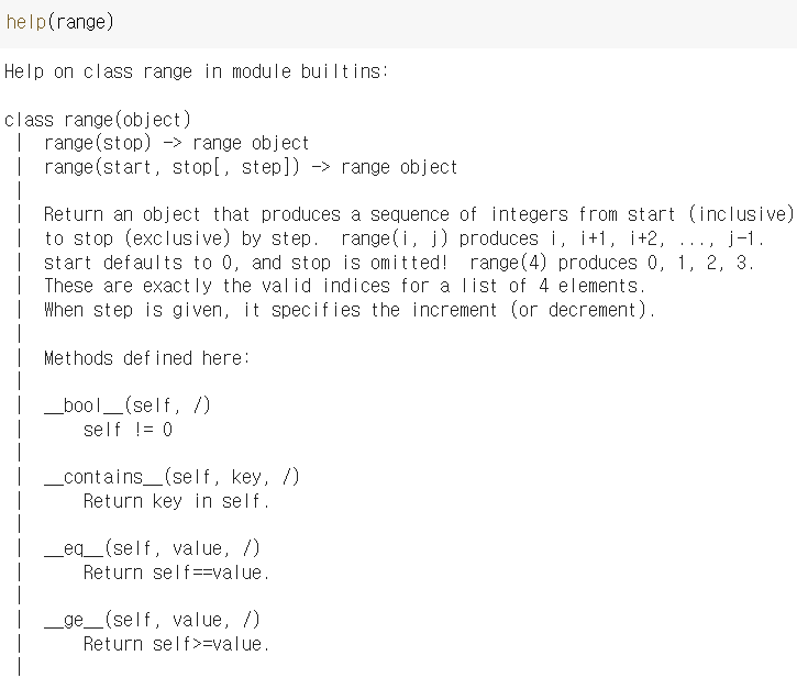 help(클래스 이름) 혹은 help(함수 이름)의 형태로