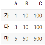 df = pd.DataFrame(a, index = ['가', '나', '다', '라', '마'])