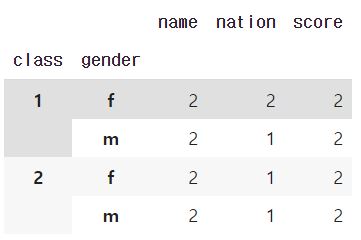 groupby 함수 안에 여러 column을 리스트 형태로 묶어서 넣어주면 됩니다. 출력은 아래와 같습니다.