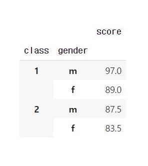 이번에는 각 학급, 성별마다 점수의 평균을 그룹화하여 구해보도록 하겠습니다.