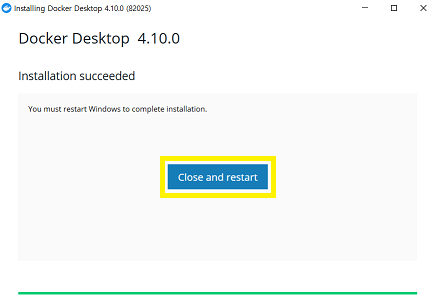 설치가 완료되면 Close and restart 버튼을 클릭하여 컴퓨터 재부팅을 진행해줍니다.