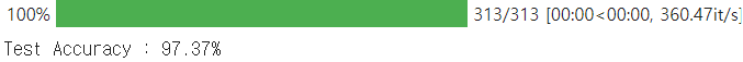 약 97% 이상의 test accuracy가 산출되는 것으로 보아 학습이 충분히 잘되었다는 점을