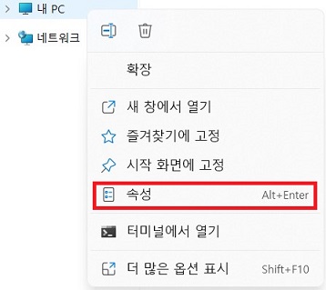 먼저, 아무 폴더나 들어간 뒤, 좌측의 내 PC 항목에 마우스 오른쪽 클릭을 하여