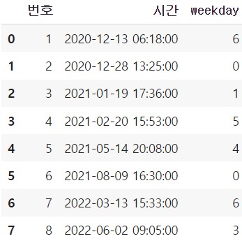df['요일'] = df.apply(lambda x : weekday_list[x['weekday']], axis = 1)