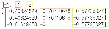 각 i번째 고유값에 해당하는 고유벡터는의 i번째 열벡터에 해당되는 점을 참고해주세요.