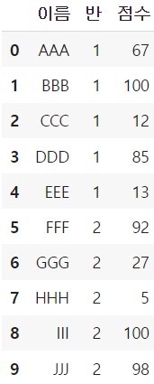 df = pd.DataFrame({"이름" : ["AAA", "BBB", "CCC", "DDD", "EEE", "FFF", "GGG", "HHH", "III", "JJJ"],