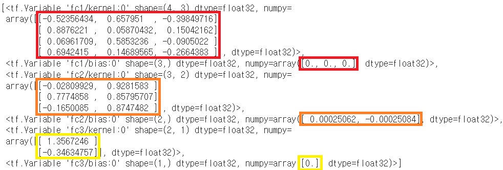 다시 가중치를 출력해보면 fc1, fc3에 해당하는 가중치 부분은 위와 동일하고,