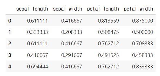 이제 각 column 들의 scale이 0~1 사이로 동등하게 맞춰진 것을 확인할 수 있지요?