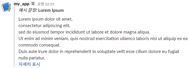 payload = {"attachments" : [{"text" : text}]} # 접기 기능 등 활성화