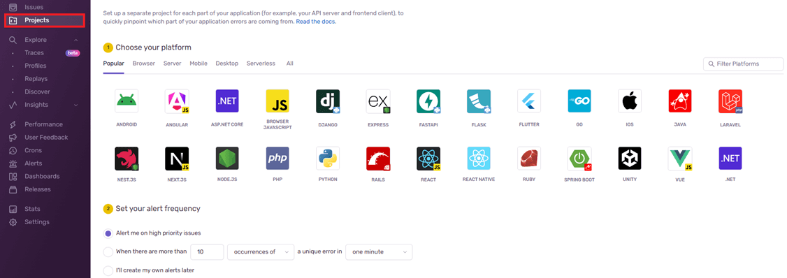이제 코드에서 sentry를 연결할 준비만 진행해주시면 됩니다.
