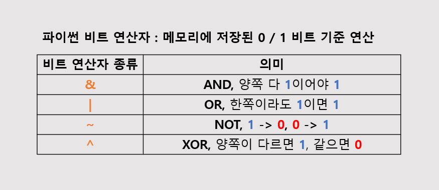 파이썬의 비트 연산자는 사실 지난 번에 다루었던 C언어 비트 연산자와