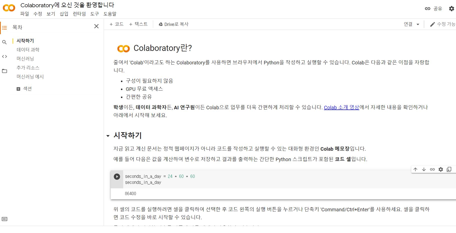 https://colab.research.google.com/notebooks/welcome.ipynb?hl=ko