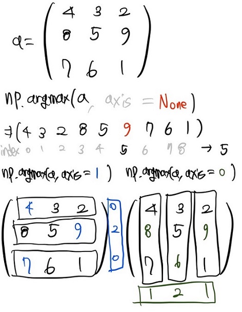 a.argmax()로 사용하는 경우에도 아래에서 설명할 axis 적용이 가능하오니