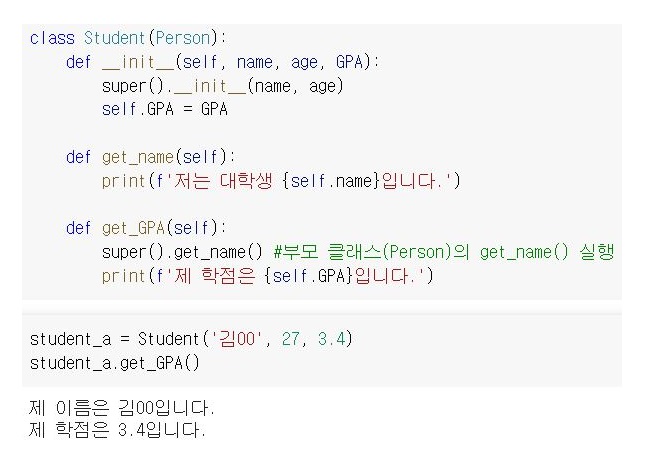 student_a.get_name() # 저는 대학생 김OO입니다.