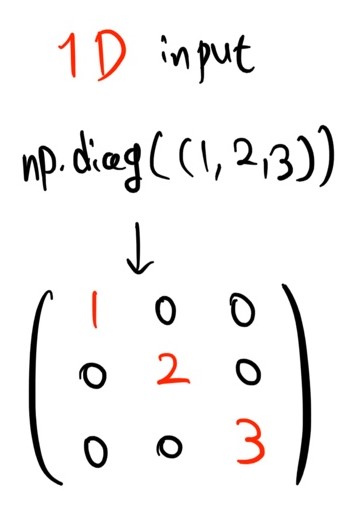 1D array를 input으로 넣은 경우는 해당 성분들을 차례대로 대각 성분으로 가지는
