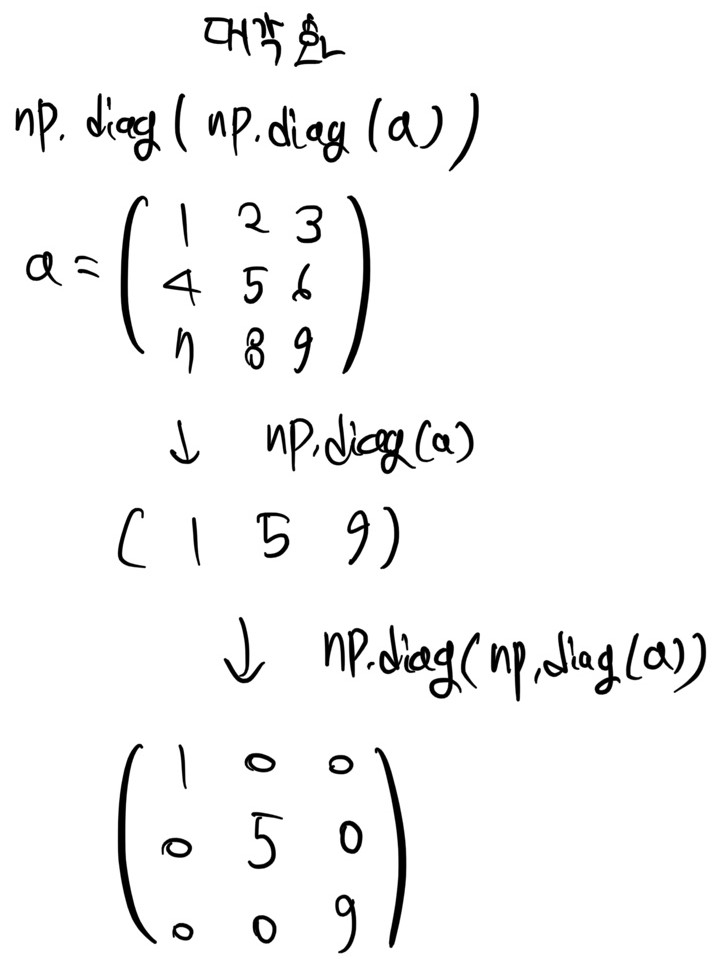 안녕하세요. 파이썬의 넘파이 라이브러리에서 대각 원소를 추출하고
